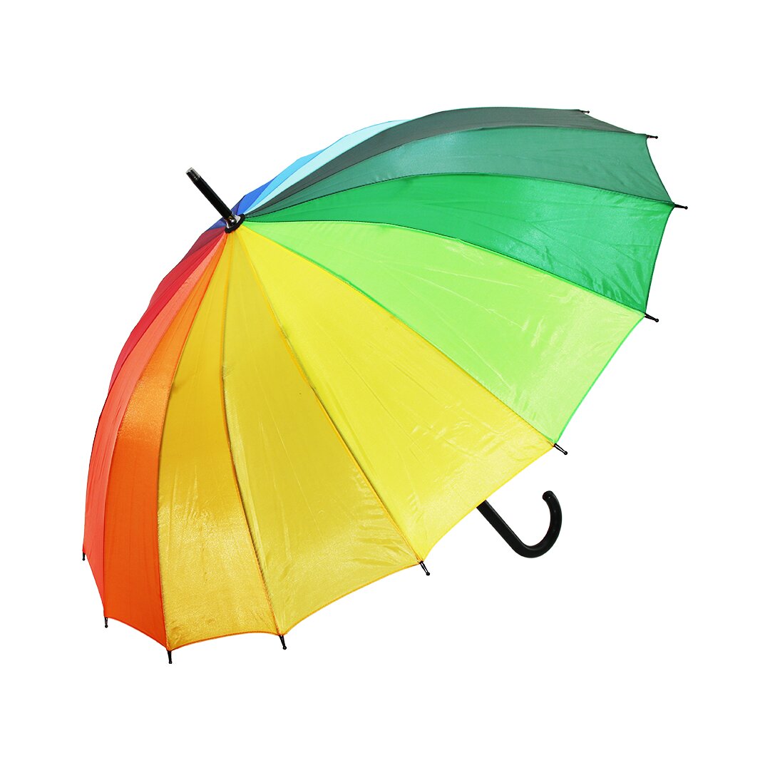 GÖKKUŞAĞI RENKLİ - FİBER 16 TELLİ ŞEMSİYE YARI OTOMATİK SİYAH BASTON SAPLI