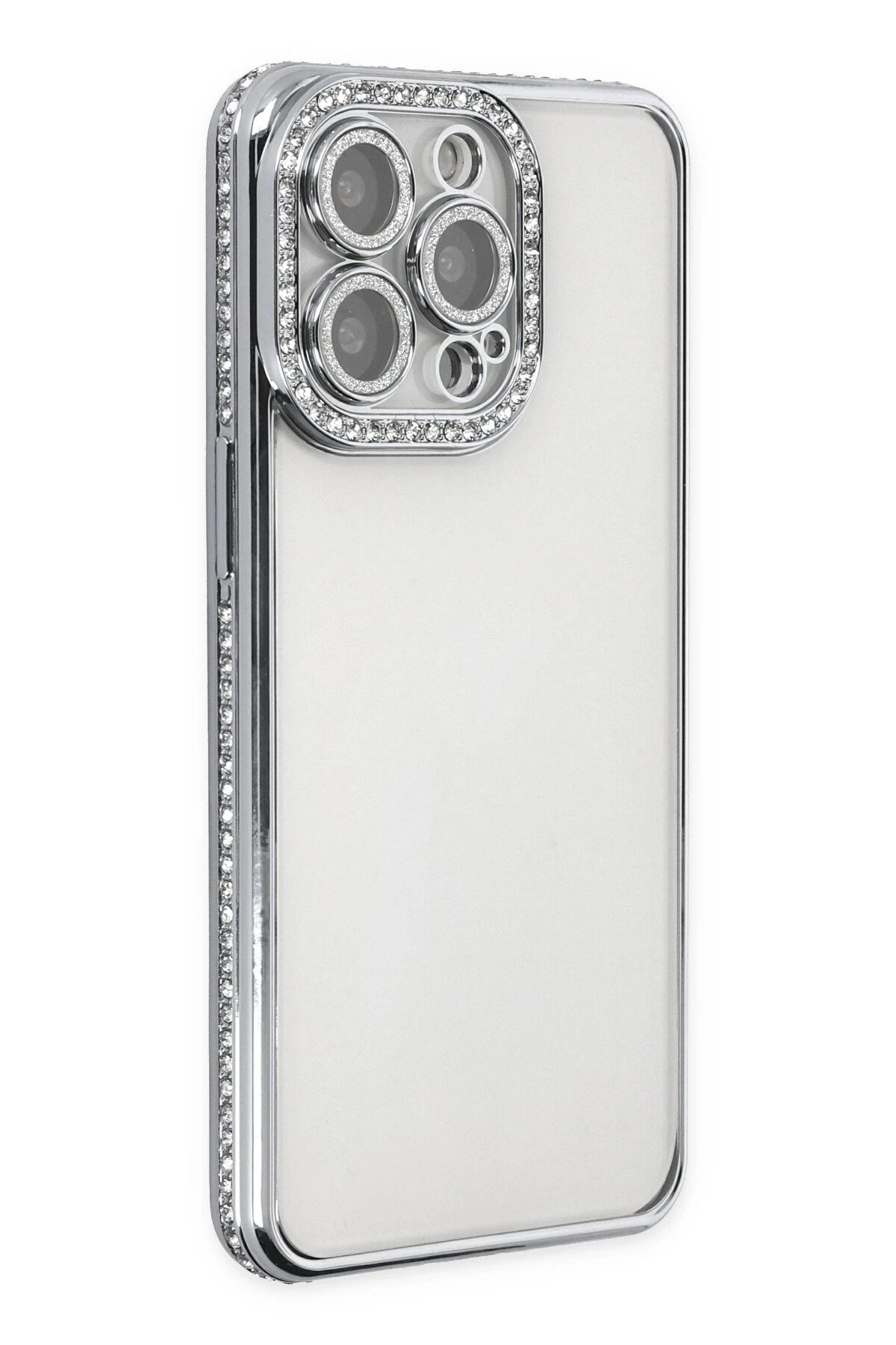 Newface iPhone 13 Pro Kılıf Joke Taşlı Silikon - Gümüş