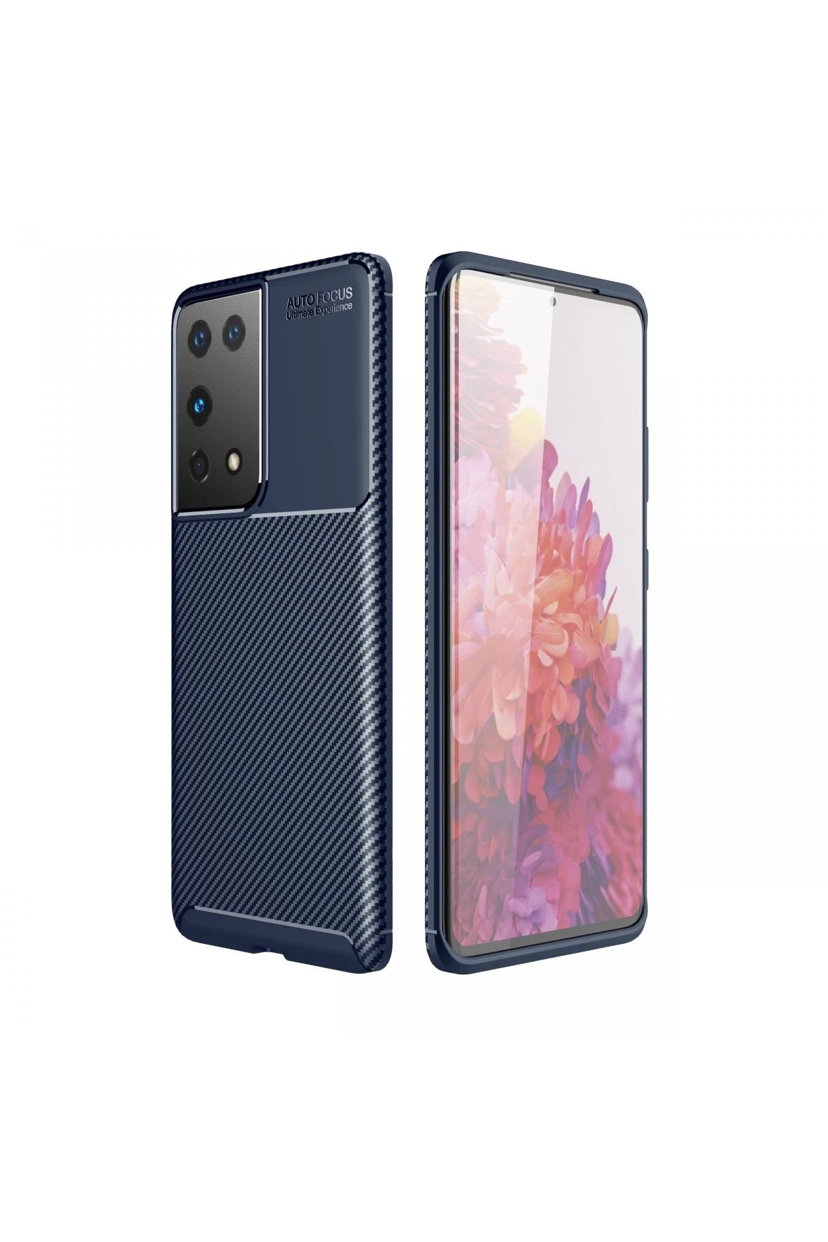 Newface Samsung Galaxy S21 Ultra Kılıf Auto Focus Karbon Kapak - Lacivert