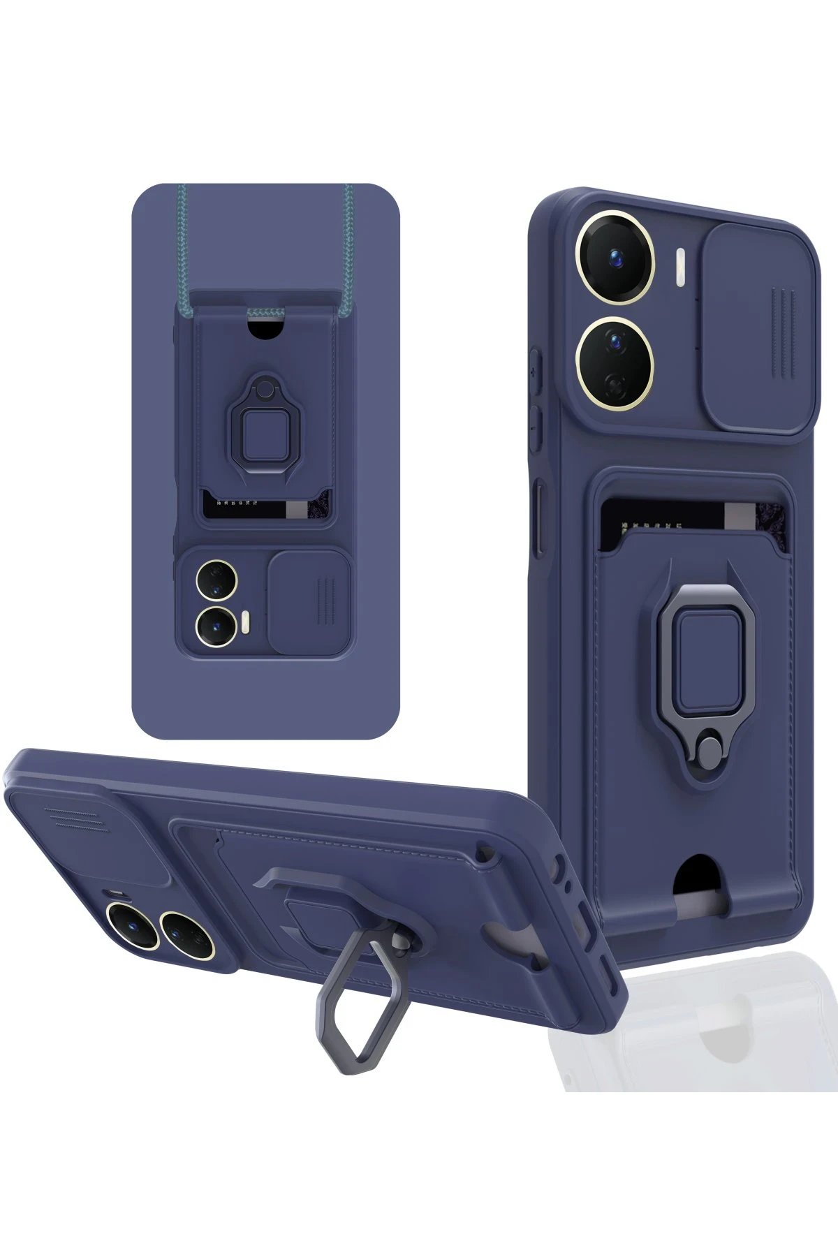 Newface Vivo Y16 Kılıf Zuma Kartvizitli Yüzüklü Silikon - Lacivert