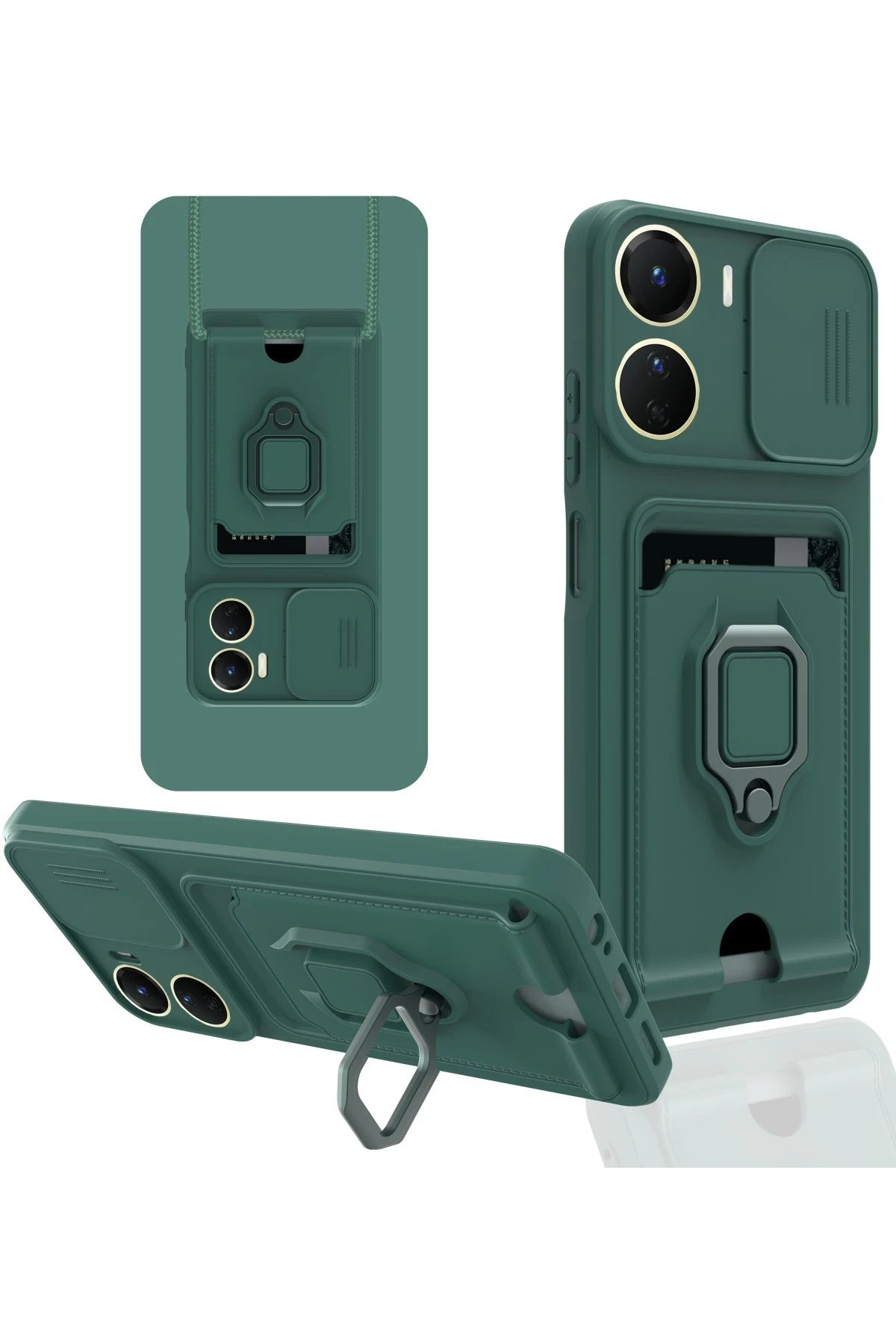 Kart Bölmeli | Kamera Korumalı | Stand Yüzük Destekli | Soft TPU Tasarım